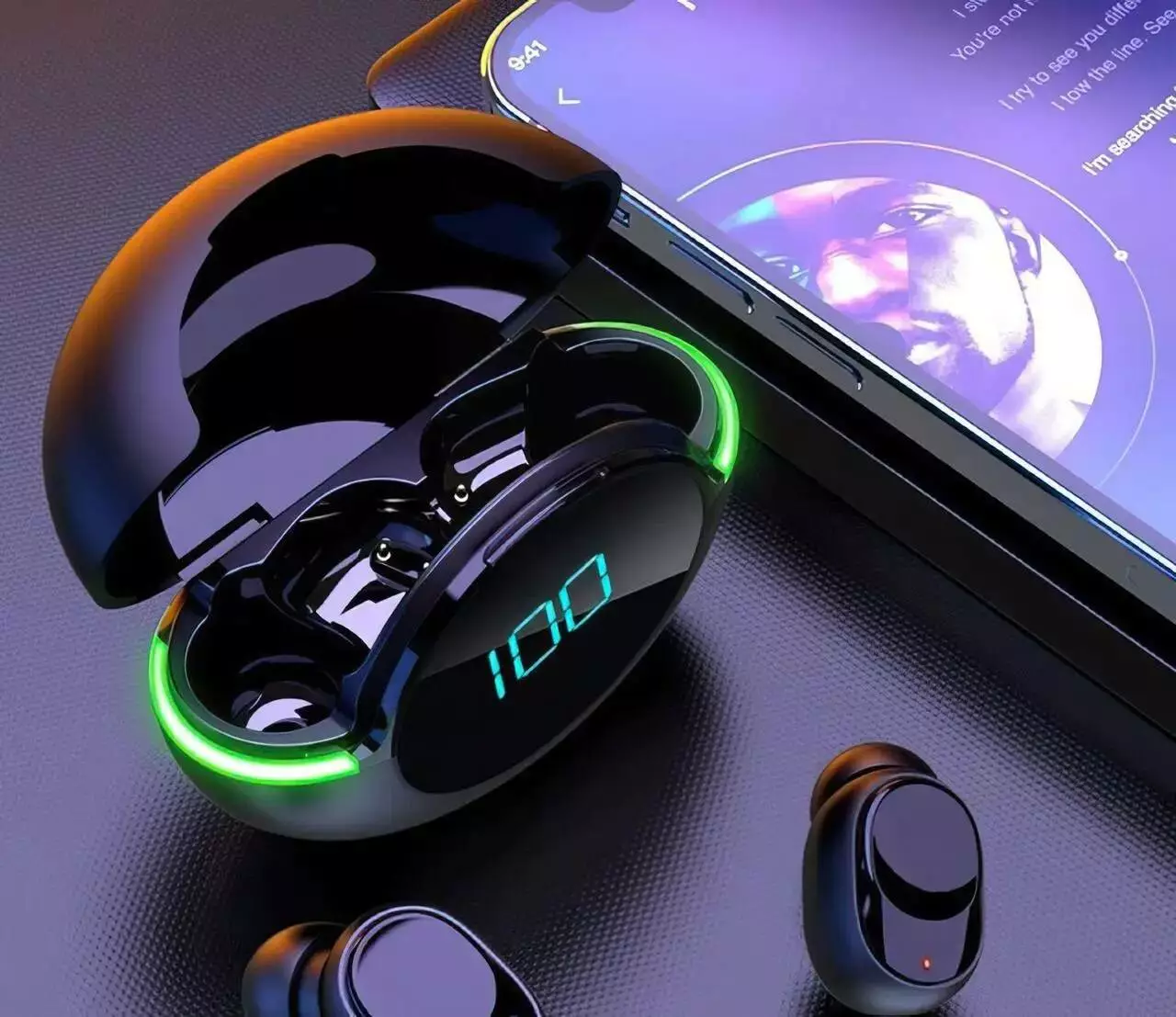 Стильний дизайн кейсу бездротових навушників має РК-дисплей і Led підсвічування.