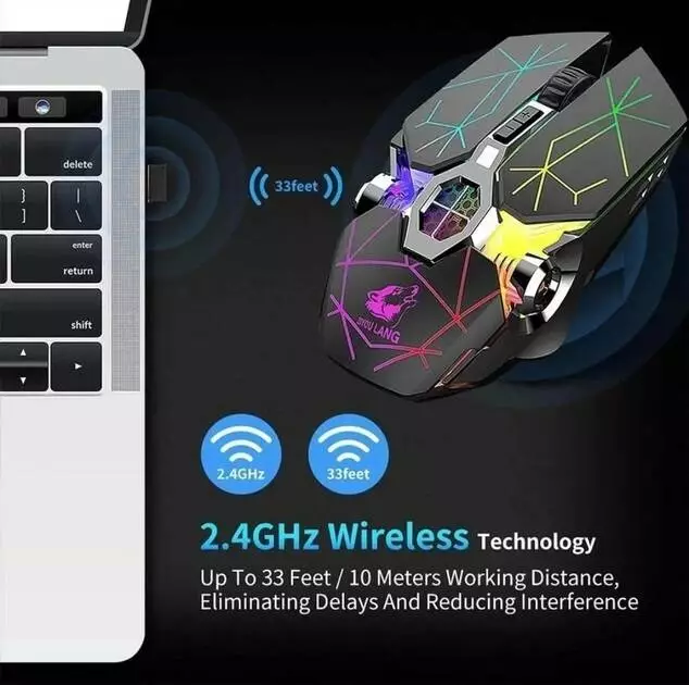 Особливістю даної моделі є підсвічування та бездротове підключення мишки. Мишка має вбудований акумулятор, який дозволяє використовувати мишку протягом 36 годин. Мишка упакована в гарну коробочку та буде чудовим подарунком для будь-якого користувача комп'ютера.